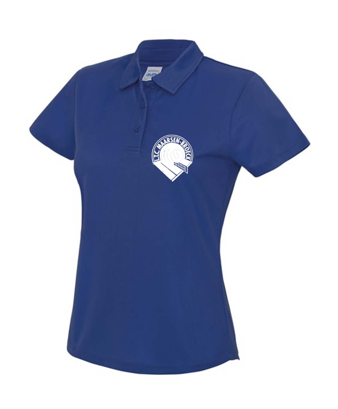 Mooie polo van soepelvallende stof in een dames model dat mooi aansluit. Voorzien van Clublogo op linkerborst.